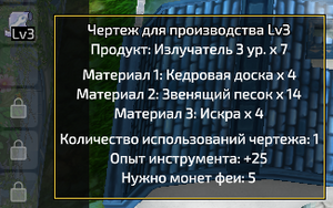 To craft, you need to obtain a crafting blueprint. The Crafting level (as well as the Antimatter Crystal level) must match the blueprint level (or be higher). For example, using a Lv.3 Crystal, a player can create items from Lv.1, Lv.2, and Lv.3 blueprints, but not from Lv.4 blueprints. You need to gather the three ingredients specified in the blueprint and the required amount of Fairy Coins, then approach the Large Furnace in Argente (1453,672), arrange everything properly, and click "Start". No fairy pet is needed for crafting. The success rate for creating items from any blueprint is 100%. Each blueprint can only be used once.