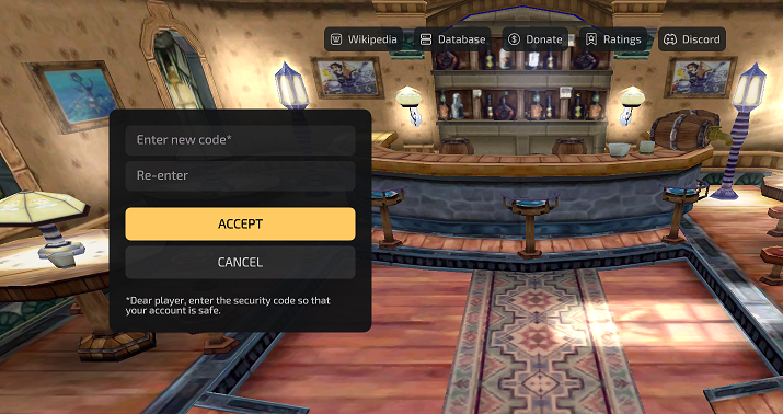 Después de ingresar tu nombre de usuario y contraseña por primera vez, el juego te pedirá que crees y configures un código secreto. Este código será útil más adelante para eliminar personajes y desbloquear el inventario y los objetos, ¡así que es importante no olvidarlo!